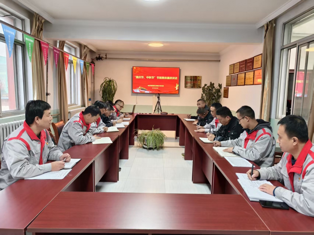 為進一步加強黨風廉政建設,營造風清氣正的節(jié)日氛圍,9月28日,內蒙項目部組織開展中秋、國慶雙節(jié)前集體廉政談話會。會議由公司黨支部副書記、紀檢員張育波主持,公司黨支部副書記、經(jīng)理史小亮作總結講話,公司領導班子成員及各部室負責人參加會議。